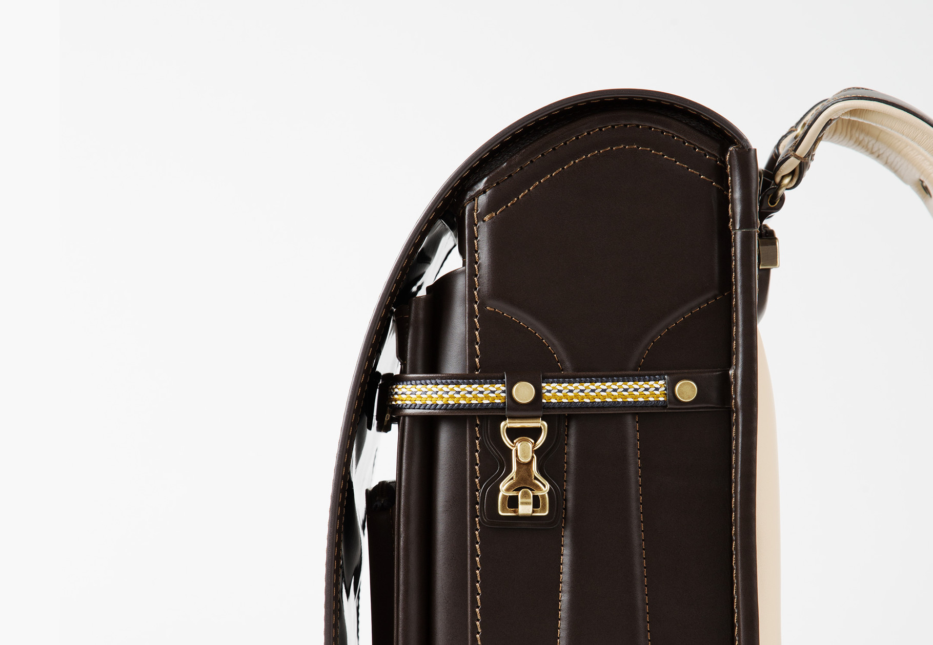 こだわりの紐がランドセルのパーツとして使用。