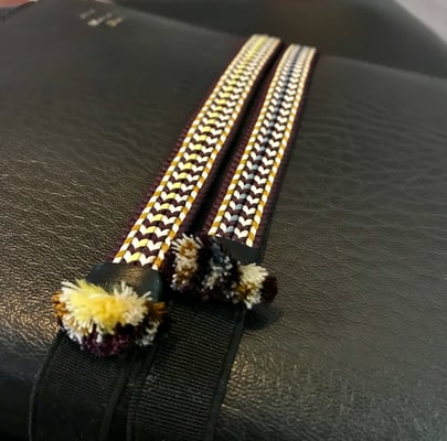 下 手帳のバンド完成。房に部分は、羽織紐の房をイメージ。