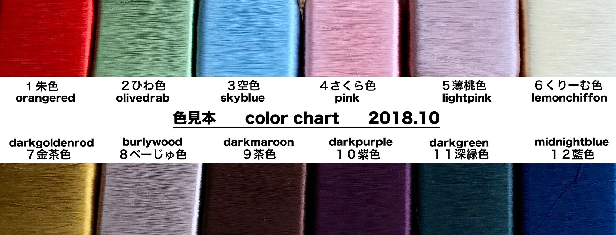 2019年現在の色糸がなくなり次第、日本産のシルクを使用。