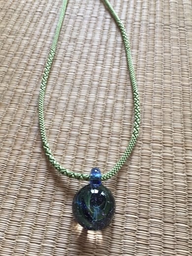 ご本人が制作したガラスのパーツを組み込み、ネックレスを製作。